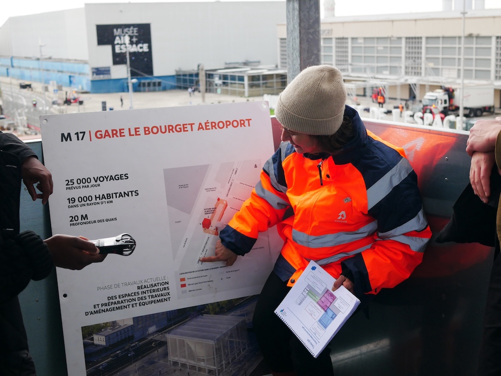 They hiked a section of the Sentier du Grand Paris, a metropolitan footpath, connecting the centre of Saint Denis to the Fort d’Aubervilliers, as line 15 of the GPE promises to do by train. They heard contrasting perspectives on the new metro system: Magda Maaoui’s reading of its connectionto the Périphérique; citizen monitoring of the impact of the Olympic Games by geographer Cécile Gintrac and members of the Comité vigilance JOP 2024; struggles to protect housing and common spaces led by the Alliance citoyenne Aubervilliers, and documented by journalist Jade Lingaard. Alongside these critical perspectives, they met representatives of Grand Parisian institutions to understand how the future of the metropole is being imagined around infrastructural megaprojects: Marion Waller, director of the city’s Pavillon de l’Arsenal architecture exhibition centre presented the municipality’s vision, while Carmen Atias, a mediator for the Grand Paris Express project, led a visit to the building site of the Le Bourget station.